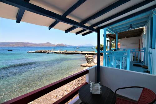 Walk out of your colourful 2 story apartment right onto the picturesque shoreline of Klima. On the main floor, you have a patio, kitchenette and double bed. Walk up the cute ladder, and you have an open room with a double bed, as well.